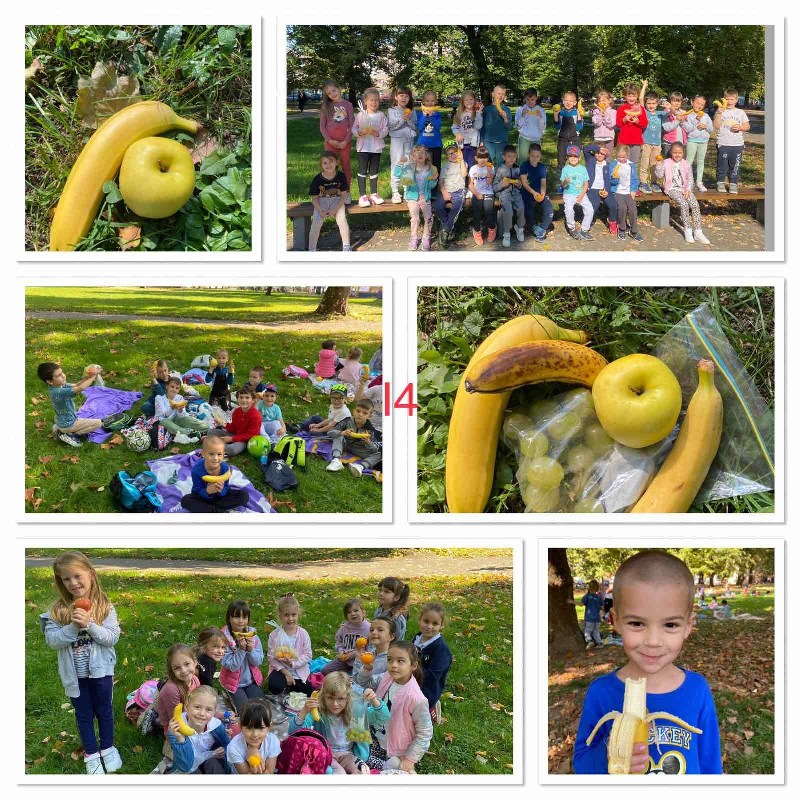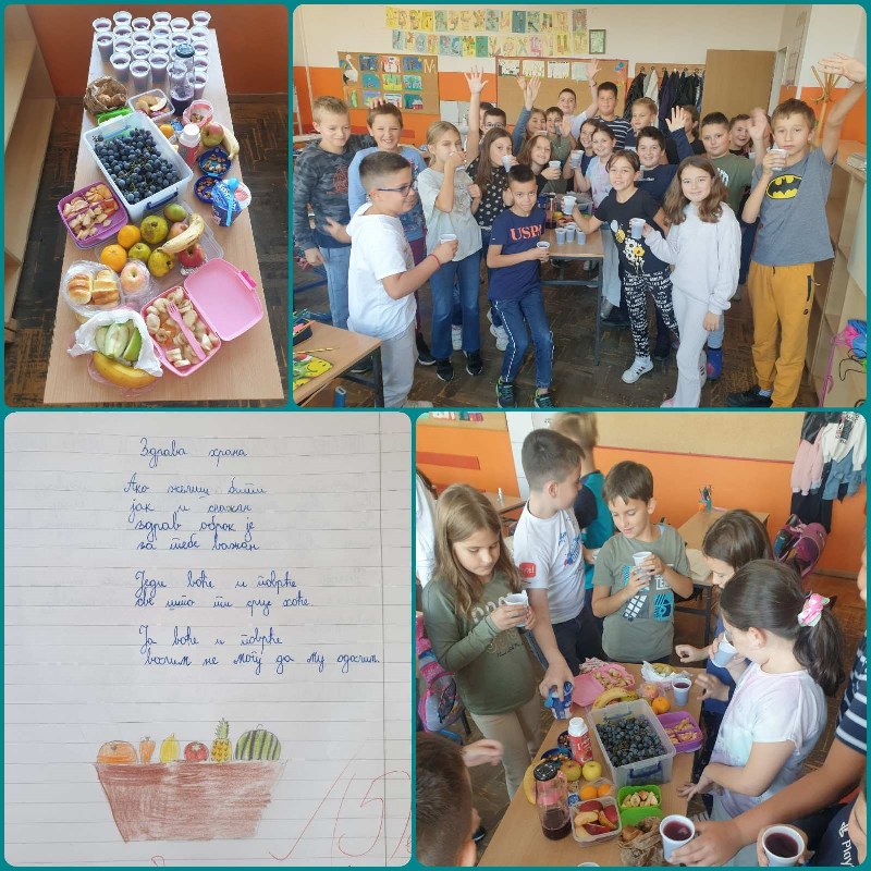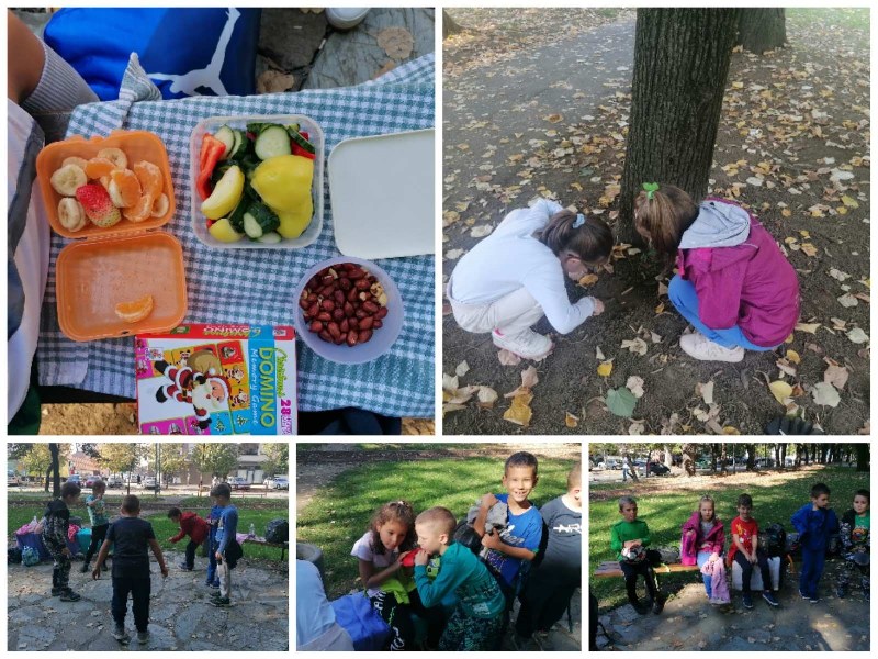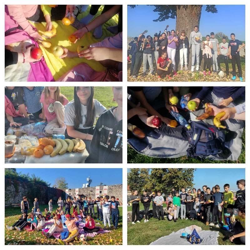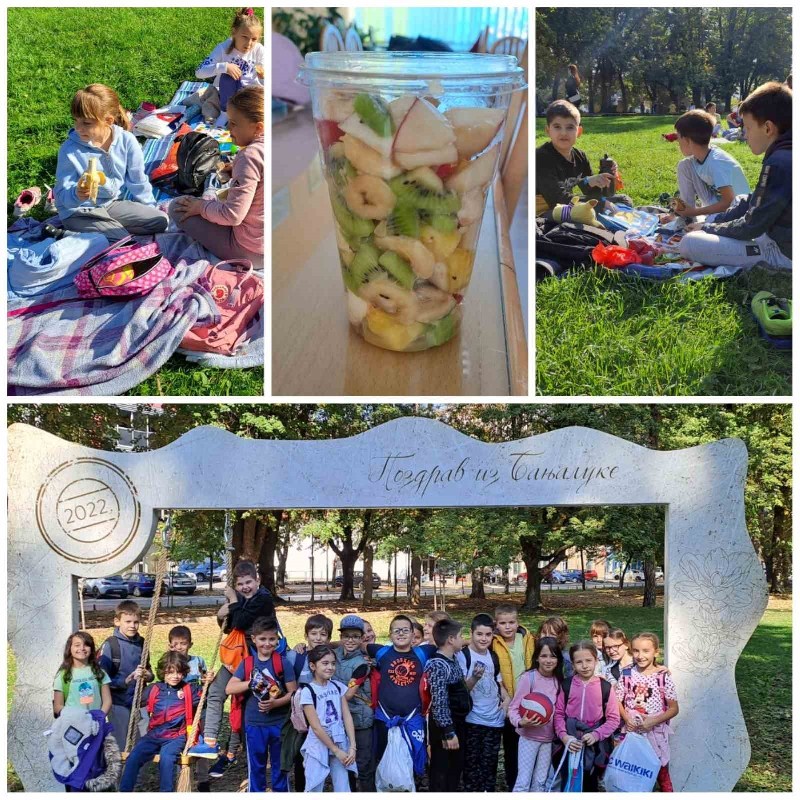 Дана 18.10.2022.год. ученици од 1. до 5. разреда су ишли на излет у парк ,,Младен Стојановић“ и на тврђаву ,,Кастел“ и уживали у конзумацији здравог оброка на чистом ваздуху у природи. Ученици I1 су имали предавање др педијатра Жељке Леовац, о здравом оброку/ужини. Предавање је имало за циљ да се дјеца упознају са начином здраве и разноврсне исхране, као и њене важности за раст и развој сваког дјетета. Да ученици развију здраве навике у конзумацији различитих намјерница, воћа, поврћа, млијека, јаја, млијечних производа, меса, рибе, житарица итд. Да стекну навику за да што више пију воде у току дана. На крају предавања сви ученици су добили пакетиће са воћем и флашираном водом од предавача наших ученика Јелене Леовац и Луке Леовац из I1 одјељења, мајке др Жељке Леовац, која се захвалила на указаном повјерењу у развијању свјести и навика код ученика наше школе.