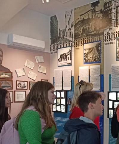 Ученици VII4 су у пратњи своје разреднице у петак, 23. 9. 2022. године посјетили Народну и универзитетску библиотеку „Петар Кочић“ гдје су имали прилику да се упознају са радом библиотеке и послом библиотекара. Основни циљ посјете је био да се упознају са животом и радом писца Петра Кочића и посјетили су спомен-собу посвећену овом великану писане ријечи. Из стручног вођења кроз изложбу сазнали су како је стварао Петар Кочић, а најинтерсантније је био холограм писца који говори цитате из својих дјела. Упознали су се са стрипом са мотивима из приповијетке „Јаблан“.