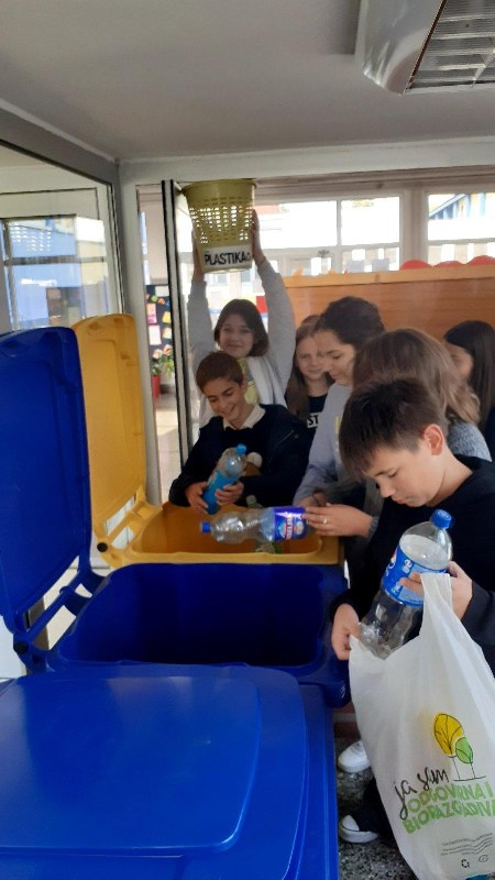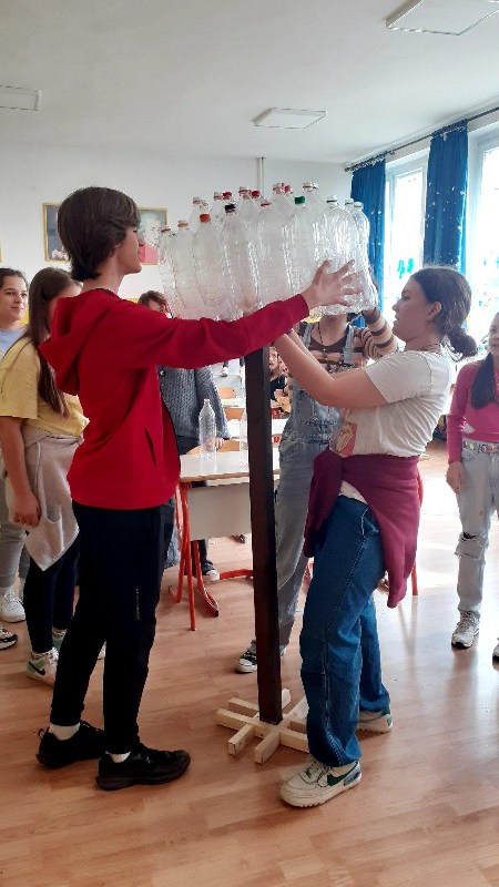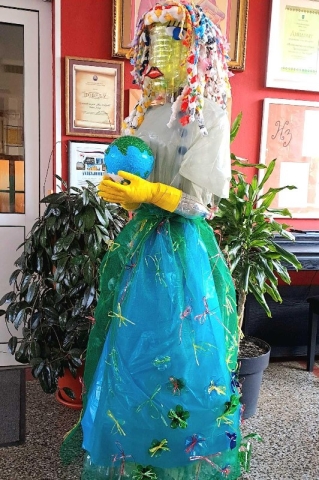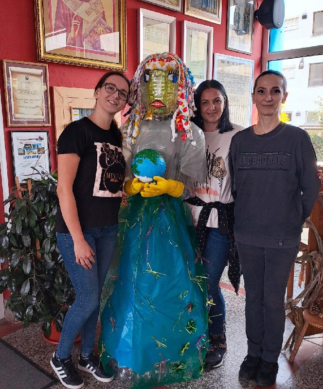 Наша школа одлучила се пријавити на пројекат са скулптуром од пластичних боца и најлонских кеса која репрезентује Мајку Природу и све њене љепоте обједињене у једну цјелину. У рукама држи Земљу, надвијајући се над њу као опомена човјечанству. Направљена је од вјештачких материјала које иначе не повезујемо са природом, указујући да је планета преплављена отпадом. Кажу да су очи огледало душе, зато смо посебан акценат ставили на очи саме фигуре. Поглед у њеним очима, које вас прате по просторији, истовремено прекоријева, моли и упозорава. Она је пуна емоција коју свако треба да доживи на свој начин.