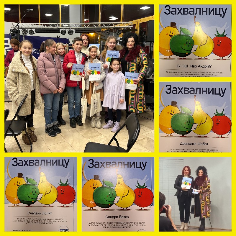 Награђени су ученици који су написали пјесмицу “Покрет“ – Филип Вујић и Срна Средојевић ученици V1 разреда и ученица V3 разреда Киара Ланчушки која је написала пјесмицу „Пуна корпа витамна“.