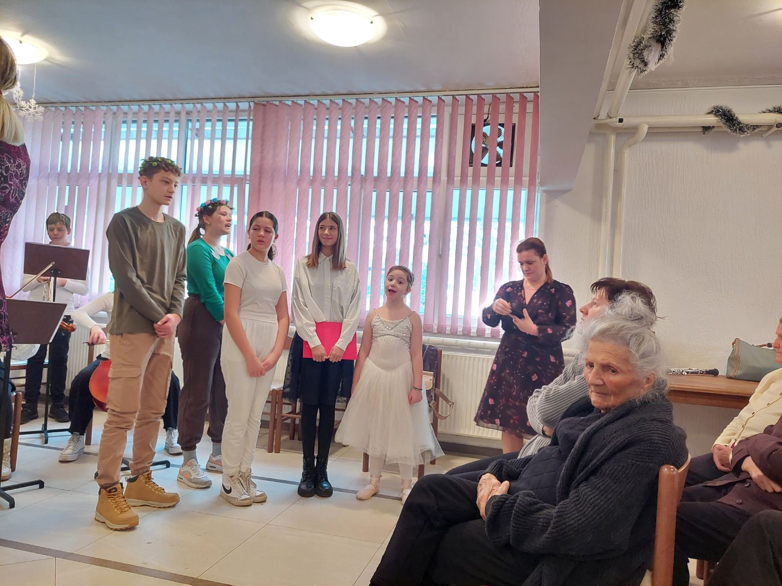 Дана, 21.12.2022. године наша школа је посјетила ЈУ Геронтолошки центар у Бањој Луци и њихове кориснике обрадовала добро познатим колажом, под називом „ИЗАЗОВИ ДАНАШЊИЦЕ“. Директорка наше школе гђа Жељка Опачић је у договору са директором ЈУ „Геронтолошки центар“ Бања Лука г. Винком Лолићем, договорила овај дирљиви сусрет успомена и наде и омогућила нам да удруженим снагама корисника и ученика, животним искуством и младалачком снагом, оплеменимо животе и једних и других, развеселимо срца и уљепшамо предстојеће празнике. То осјећање задовољства које је у нама пробудио осмијех на њиховим лицима, немогуће је претворити у ријечи. Ту искру емпатије дуго ћемо носити у својим грудима и покушати свијету указати на праве моралне и непролазне животне вриједности. На крају приредбе наши ђаци и наставници су се дружили са корисницима Центра и том приликом смо им уручили честитке за предстојеће празнике који су израдили ученици разредне наставе. Још једном се показало да је животна мудрост старијих савршена пратња на путу одрастања млађих и да се тегенерације савршено разумију. Координатори ове активности су биле наставница Вера Бартел и учитељица Драгана Декић, а ученици су били у пратњи директорке школе, госпође Жељке Опачић и наставница Вање Кесић и Вишње Татић.