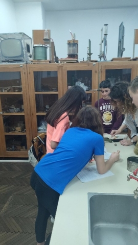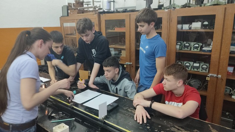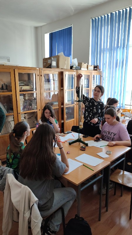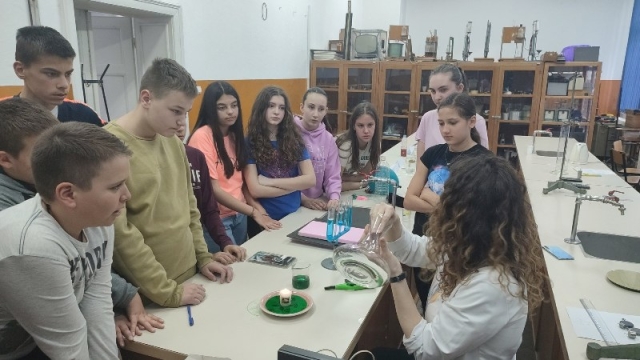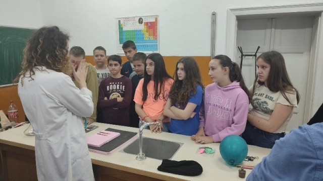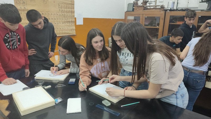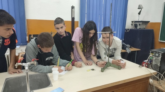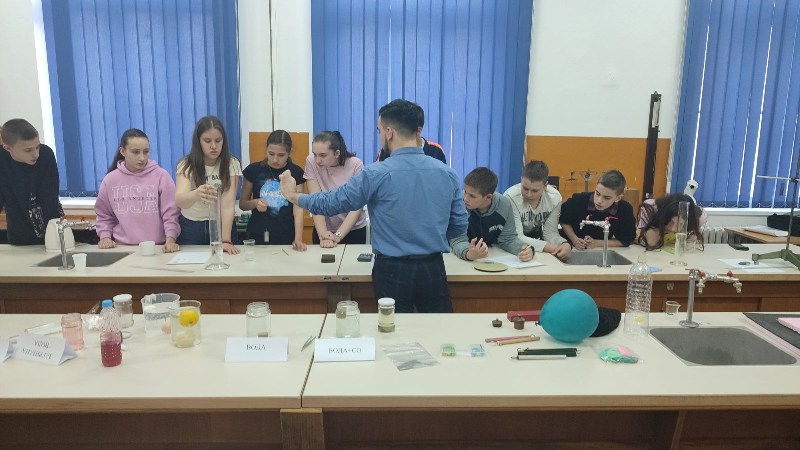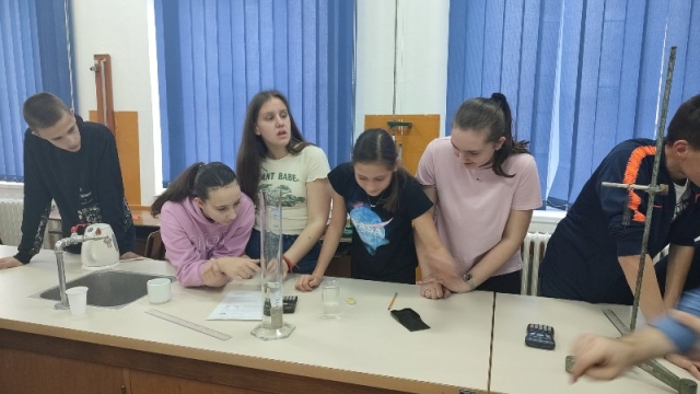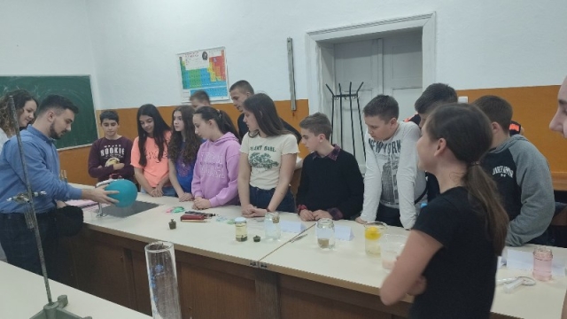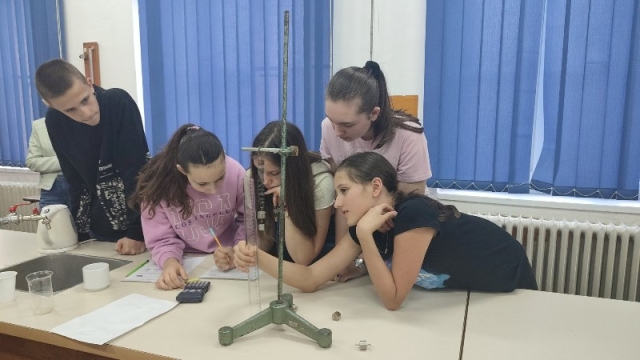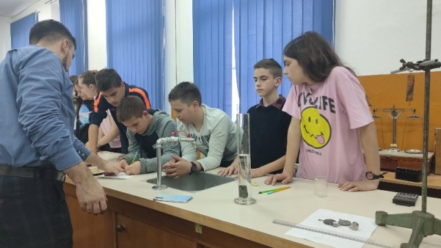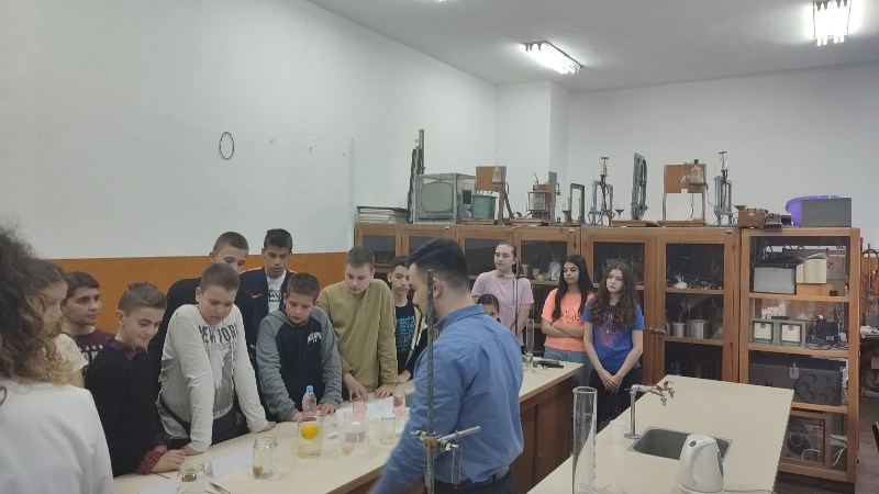 - .Ученике је водила наставница физике Александра Димитријевић, након чега су се ученици вратили на 2. час у поподневној смјени. Другог дана одржавања, 24. марта,у периоду од16:00–18:00 часова одржана је Мала школа експерименталне физике за ученике 7.и 9.разреда. Ученици седмих разреда који су учествовали били су: Огњен Газић, Никола Мејакић, Романа Лазендићи Тара Врачар из 7-1, Лазар Митровић и Коста Бркљач из 7-2, Петар Ђурица из 7-3, Ана Поповић и Ирина Царић из 7-4 и Јована Маринковић из 7-5. Ученици деветих разреда који су учествовали били су : Душан Пејаковић, Алекса Мандић, Јелена Вујанчевић и Ивана Костић из 9-1, Вук Поповић, Алекса Башић, Алекса Марјановић и Елена Милијашевић из 9-2. Ученици 7. разреда имали су прилику да виде демонстрационе вјежбе: 1. честична структура–брзина одвијања дифузије у течностима различитих температура,2.од чега зависи густина неког тијела, 3.типови интеракција-гравитациона, електричнаи магнетна интеракција између два тијела, 4. од чега зависи сила трења, 5. од чега зависи атмосферски притисак, хидростатички притисак и притисак чврстих тијела, 6. закон спојених судова. Поред демонстрационих огледа имали су вјежбе мјерења и обраду резултата мјерења: 1. одређивали су густину чврстог тијела и рачунали грешке при мјерењу, 2. одређивали коефицијент еластичности опруге и цртали графикон. Девети разреди су имали прилику да: 1.одреде жижну даљину сабирног сочива, 2 .простирање свјетлости кроз план паралелну плочу, 3.скретање млаза воде, 4. пахуљице које плешу, 5. провјера Омовог закона и 6. дифракција на оптичкој решетци – разлагање бијеле свијетлости у боје. Ученици су након тога били у планетаријуму и гледали презентацијукоја је била планирана. Ученике 7. и 9. разреда је водила наставница физике Александра Димитријевић.