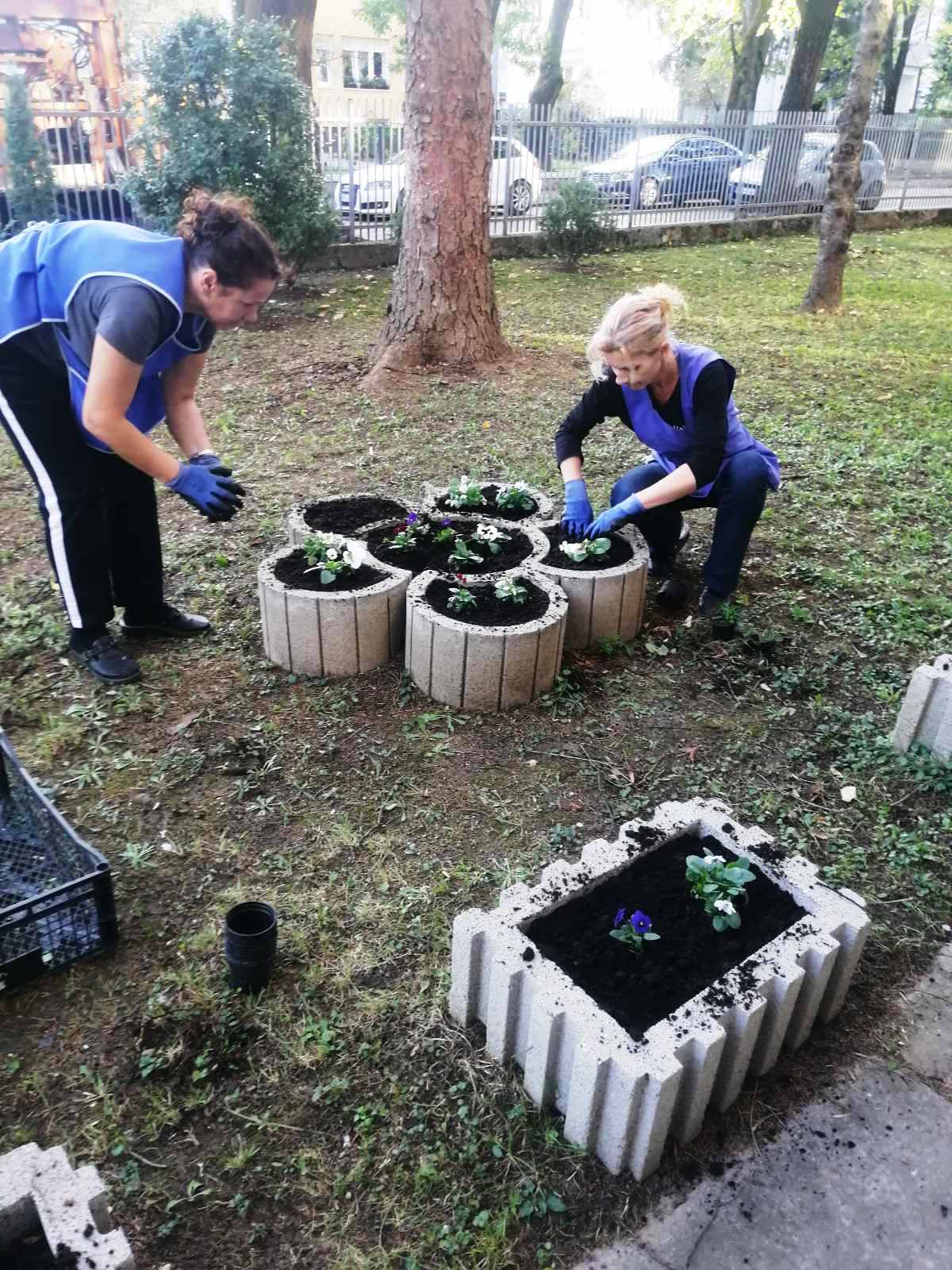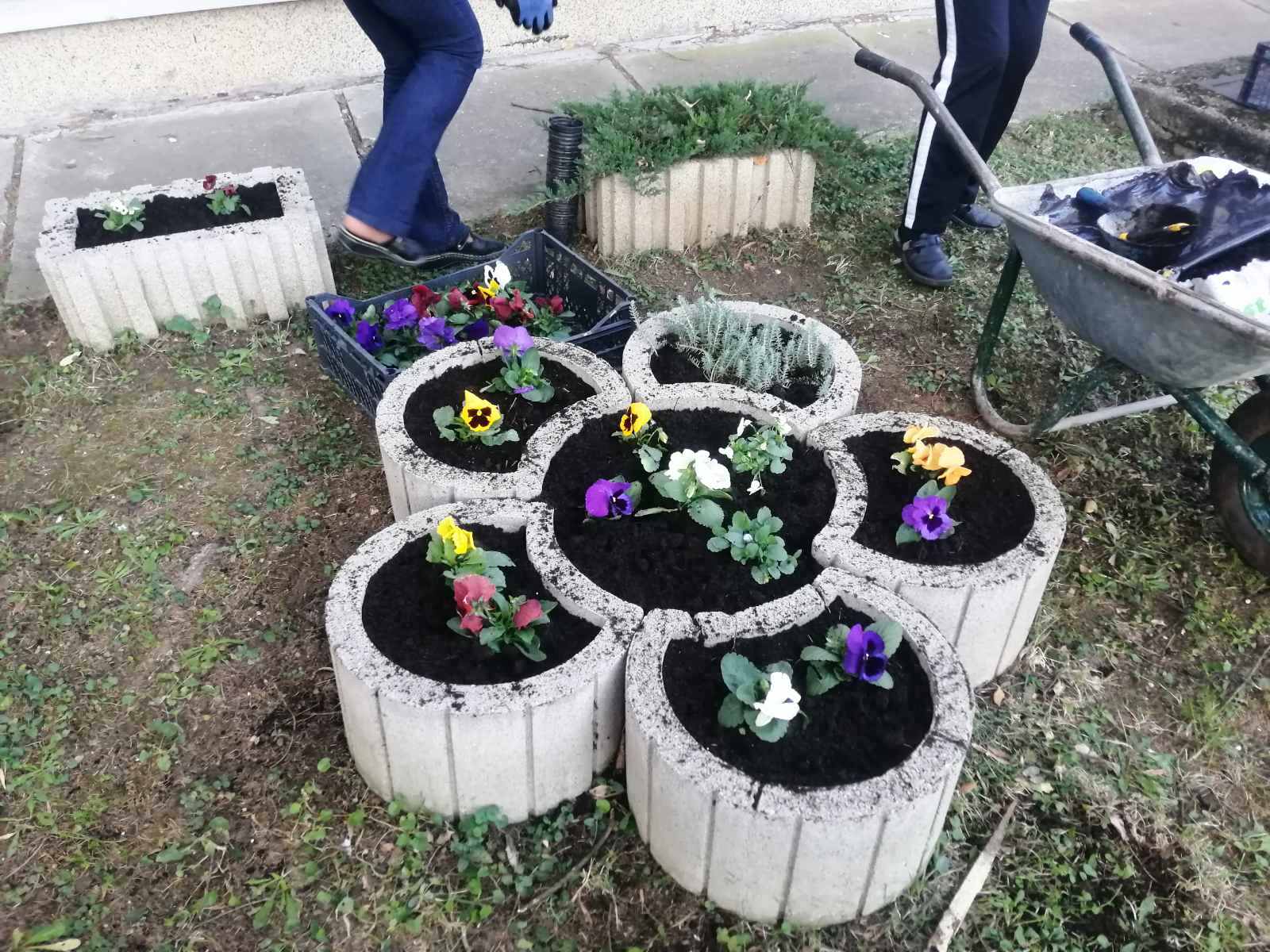 - уређено школско двориште и спољашњи зид фискултурне сале,
