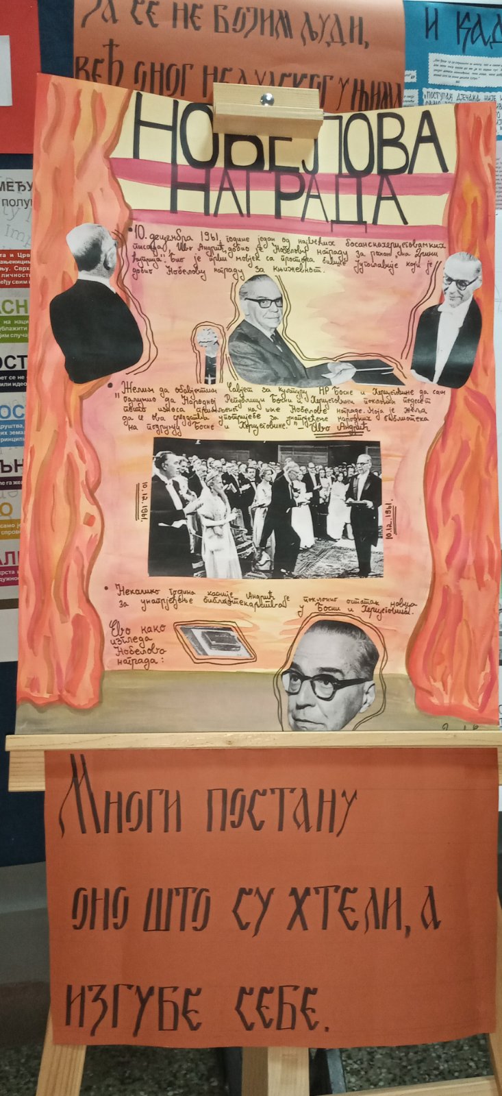 Сваке године у нашој школи обиљежавамо Андрићеве дане.Ове године у периоду од 13.11. до 17.11.2023.године ученици 6.разреда и 9.разреда : Бајић Новак, Јаснић Михаило, Поповић Вук, Вујић Филип, Милићевић Александар, Гаћеша Елена- 6.1, Костадиновић Саво, Палић Соња, Палић Лара,Талић Ана, Мачкић Стефан- 6.2, Стојановић Милица, Млађеновић Миа, Атлагић Миа – 6.4, Кривошија Искра, Дринић Елена, Стјепановић Тара 9.2, Радановић Маша, Бараћ Луна и Ћурковић Ирина – 9.1 су у виду презентација и паноа обиљежили Андрићеве дане. Ученици осталих разреда су имали прилику ( у одређеним терминима ) у холу школе да погледају и послушају о животу и раду нашег Андрића. У холу школе је постављен и кутак са детаљима који подсјећају на живот и дјело Иве Андрића.