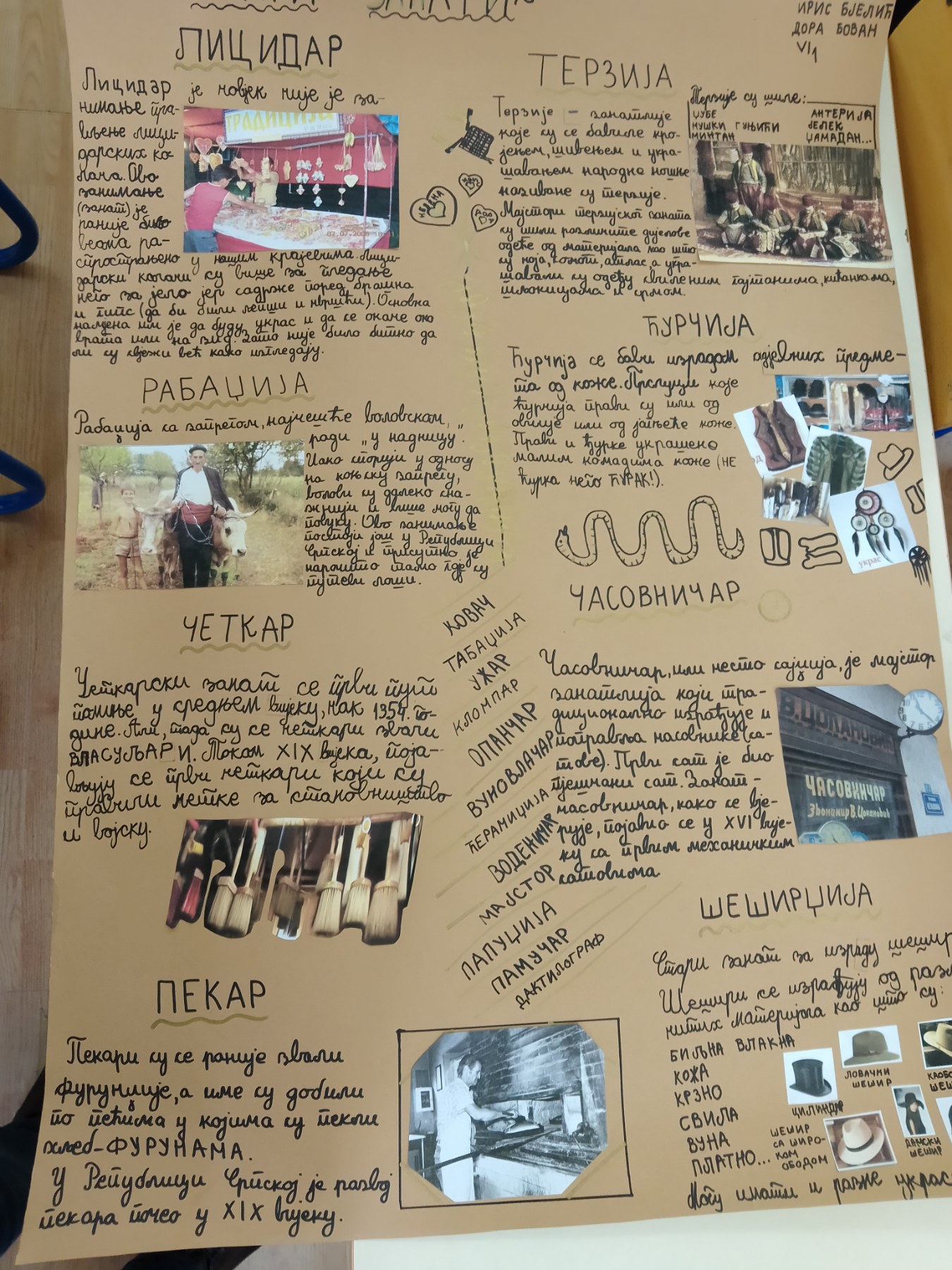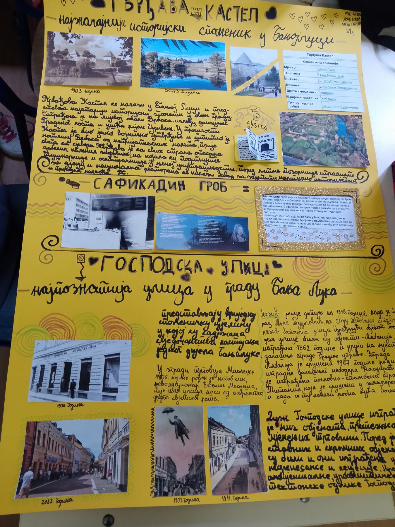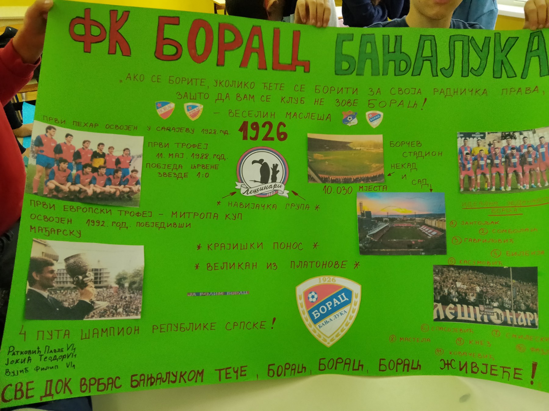 У склопу факултативне наставе „Истраживачи завичаја“, ученици шестог разреда су радили паное који су везани за прошлост нашег града, старе занате, историјат спорта и спортских клубова нашег града. На својим паноима су приказали мотиве ношњи нашег завичаја, јела са наших подручја и знаменитости нашег града. Своју маштовитост и креативност су истакли на паноима који су излагани у холу наше школе током првог полугодишта. Ученике је припремао наставник историје Мирослав Боснић.