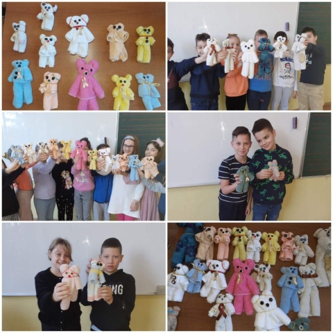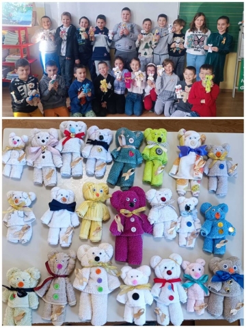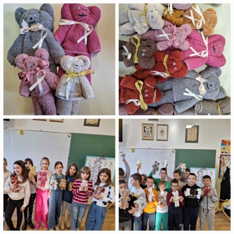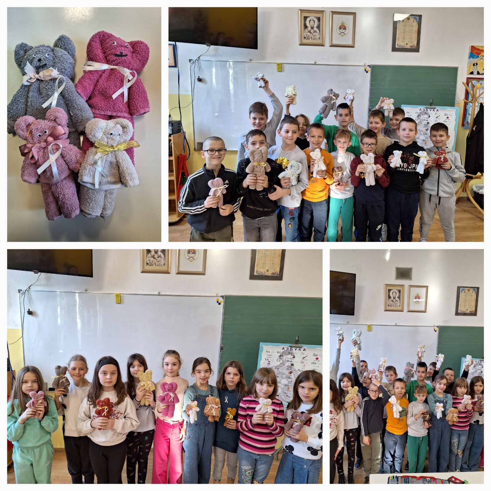 Дана 15.2.2024.године ученици трећих разреда су обиљежили Међународни дан дјеце обољелих од малигних болести, те на себи својствен, креативан начин пружили подршку нашим храбрим срцима. Израдом медвједића, који ће бити уручени дјеци која су тренутно на лијечењу, ширимо свијест о малигним болестима код дјеце и пружамо подршку обољелим малишанима и њиховим родитељима. У овој активности су учествовали сви акиви од првог до петог разреда. Координатор активности је била Милица Везмар.
