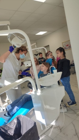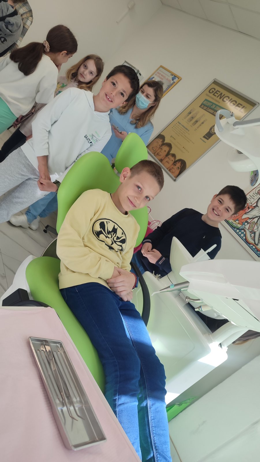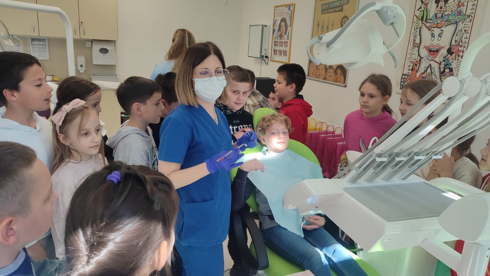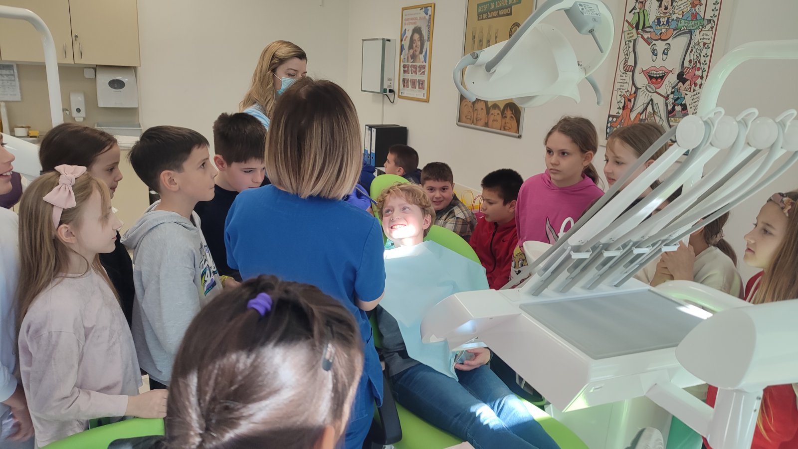 Поводом Свјетског дана оралног здравља. 20.3.2024.године, а у склопу партнерске сарадње породице и школе, ученици 4-1 са учитељицом Мирном Милошевић посјетили су Специјалистички центар „Дентална клиника“ на Стоматолошком факултету.