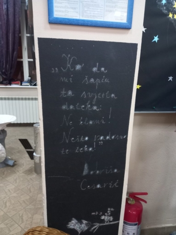 Дана 28. 11. 2024. ученици осмог и деветог разреда који похађају додатну наставу из хемије и физике у пратњи наставнице српског језика Сандре Батез и наставнице хемије Бранкице Јовичић посјетили су 3. Фестивал стваралаштва „Анита Саватовић“ који се одржава у КШЦ ,,БЛ Иван Мерз“. Програм фестивала усмјерен је на вечери уз надарене и талентоване ученике, кроз многобројне активности које за главни циљ имају подршку дивергентног мишљења те продукцију оригиналних рјешења у подручју биологије, физике, матерњег језика, музике и плеса. Наши ученици су присуствовали радионици „Водени свјетови у Млијечном путу“ чији је координатор проф. Андреана К. Ћурић, док су наше наставнице присуствовале психолошкој радионици „Брига за себе“ коју је водила проф. Александра А. Пухало.