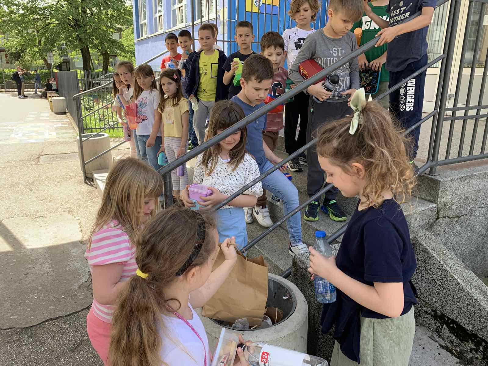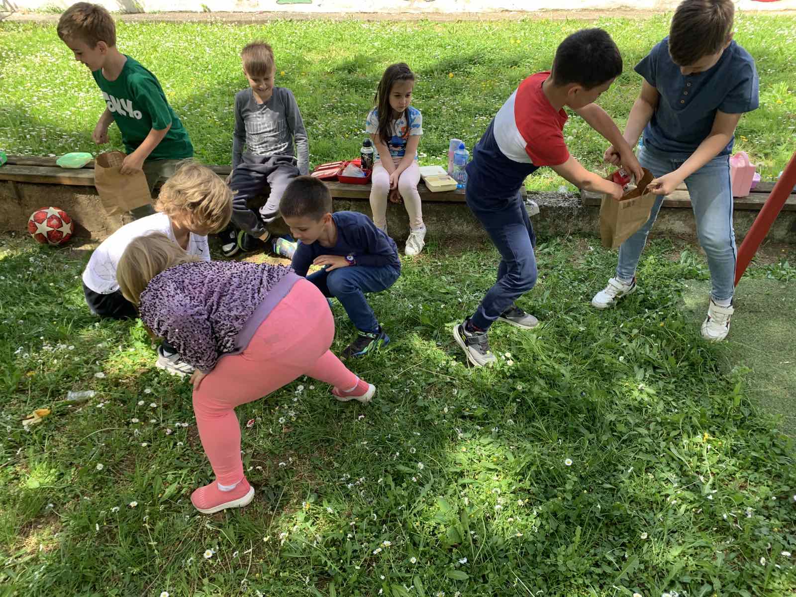 Ученици првог разреда су тај дан стекли знања о значају очувања планете Земље кроз низ занимљивих задатака у часопису „Јежурко“. Читали су пјесму „Чиста планета“ и разговарали о њој, цртали планету Земљу, причали причу на основу слике „Уређење парка“, радили на занимљивим задацима из еко кутка и размишљаонице. Након рада на задацима ученици одјељења I2 су са својом учитељицом Миленом Максимовић изашли у школско двориште гдје су након ужине на отвореном имали задатак да покупе све папириће и тако очисте и уреде школско двориште. Акцији чишћења школског дворишта су се придружили и другари из одјељења I1. На овај начин су наши најмлађи ученици послали поруку колико је важна чиста и здрава животна средина.