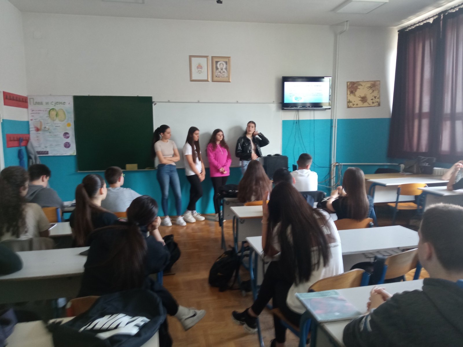 Ученице одјељења IX1 Романа Лазендић , Наталија Тодић, Теодора Јовић, Оливера Илић, као и ученици IX2 Коста Бркљач и Николина Вучановић одржали су презентације другим ученицима IX разреда. Презентовање се одвијало у оквиру наставе на часовима биологије. Циљ је био да се ученицима подигне еколошка свијест о заштити природе и њеним ресурсима.