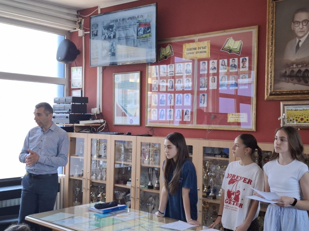 Дана 30.4.2025. године, у холу школе, одржан је огледни час из историје који је држао наш наставник Мирослав Боснић. Часу су присуствовали ученици: VI 2, VI 3 ,VI 5 и VIII 2. Испред наставничког колектива били су наставнници: Дејана Шкорић Мијатовић, Сања Шиљак, вјероучитељ Миодраг Копања, Нада Вулета и Драган Гатарић, као и школски педагог – Сашка Јововић. Тема часа је била „НДХ злочини над Србима и другим народима – култура сјећања“, а реализован је поводом 80 година пробоја логораша из Концентрационог логора Јасеновац.