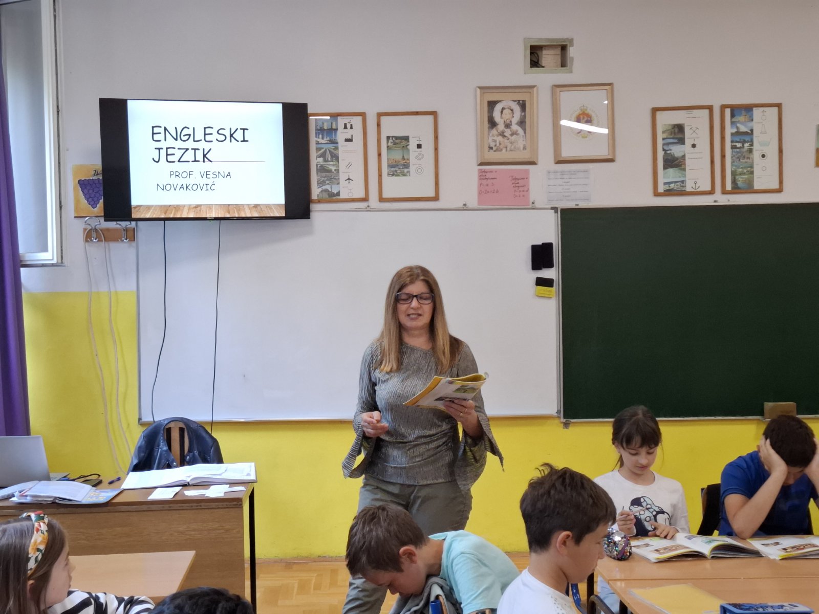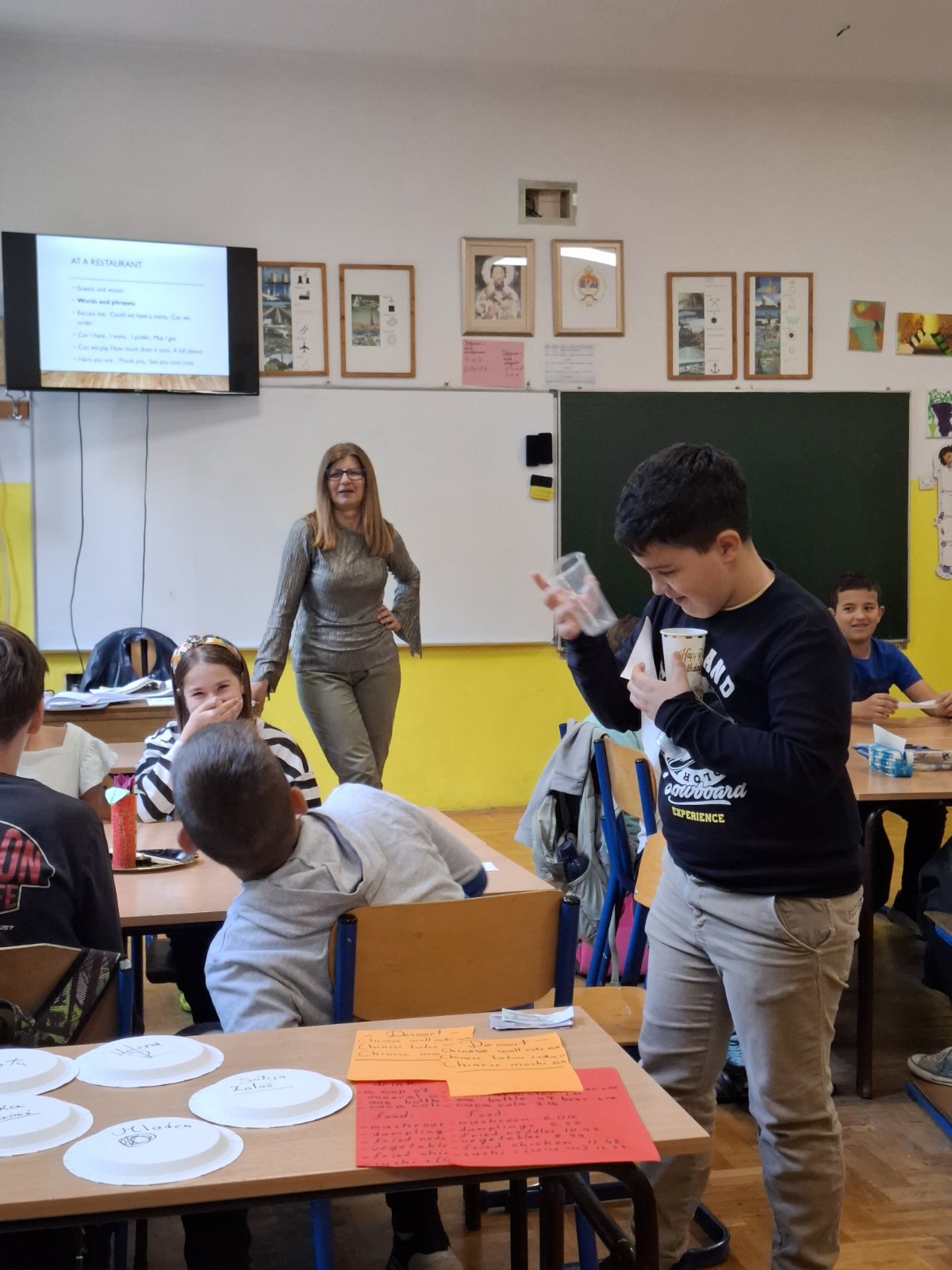 Огледни час из енглеског језика у одељењу 5-4 је одржала Весна Новаковић, проф. енглеског језика. Час је успјешно реализован 13.5.2025. године. Ученици су имали прилику да креирају дијалог и одглуме да су у неком ресторану у: Кини, Италији, Србији и Грчкој. Коришћењем разноврсних ријечи и израза на енглеском језику ученици су учинили да атмосфера у учионици буде забавна и занимљива. Часу су присуствовале колеге наставници из Актива страних језика.
