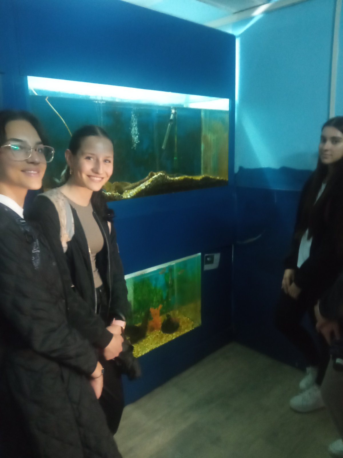 Дана 21.5.2025.год. ученици биолошке секције посјетили су акваријум на ПМФ у. Заједно са наставницом Бојаном Вукота разгледали су и коментарисали разне врсте риба,гмизаваца и водоземаца. Сазнали су многе занимљивости везане за поједине врсте.