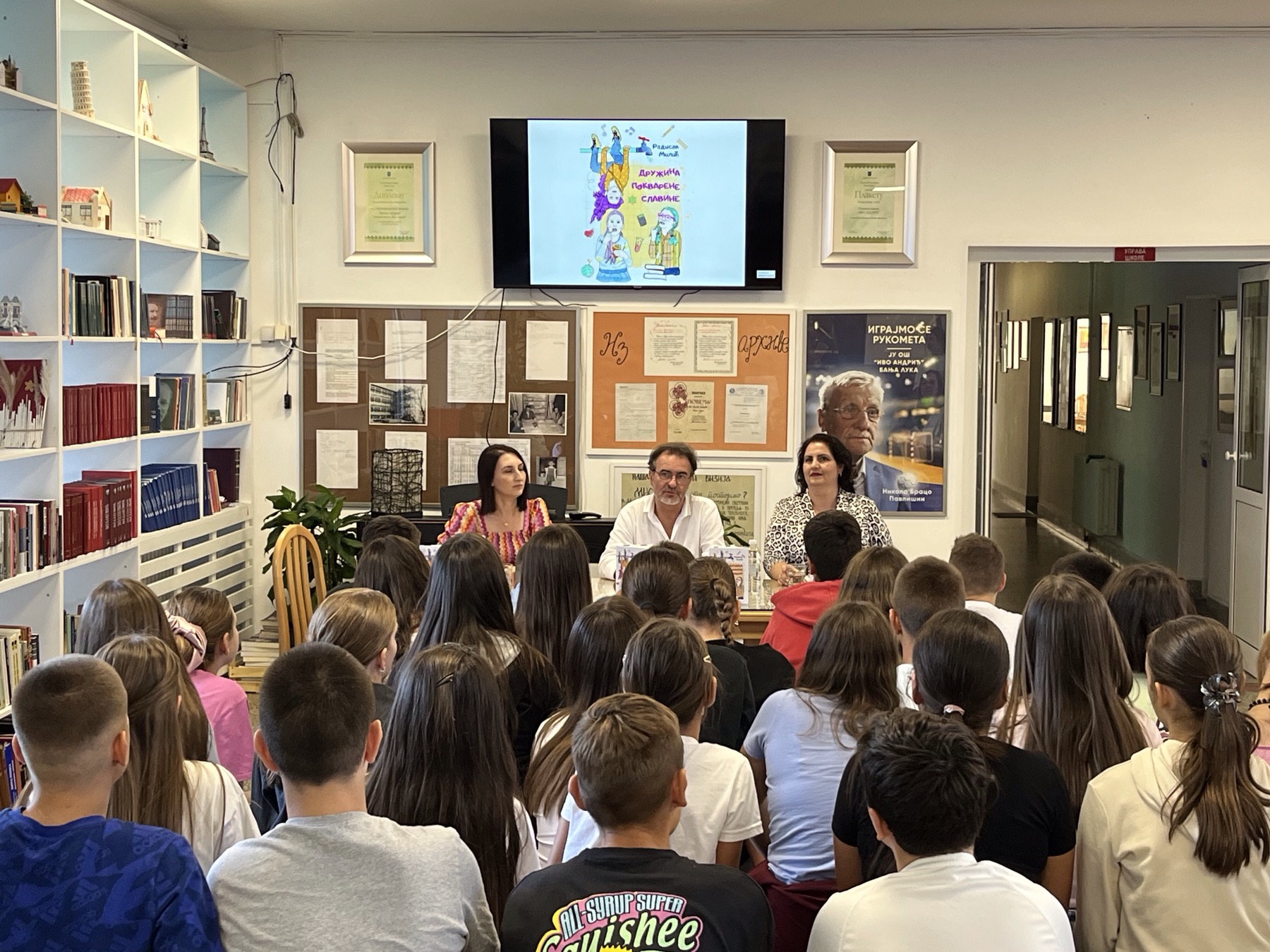 У четвртак, 18. септембра 2025. ,године, је у нашој школи одржана промоција књиге ,,Дружина покварене славине“ . Писац Радисав Милић уз сарадњу проф. Сање Мацуре, заинтересовали су ученике седмог разреда да прочитају лектиру. Дјеца су са промоције изашла пуна утисака и са нестрпљењем и жељом да прочитају ову сјајну књигу. Завод за уџбенике је донирао књиге за нашу библиотеку. Модератор овог догађаја је била Сандра Батез, проф. српског језика.