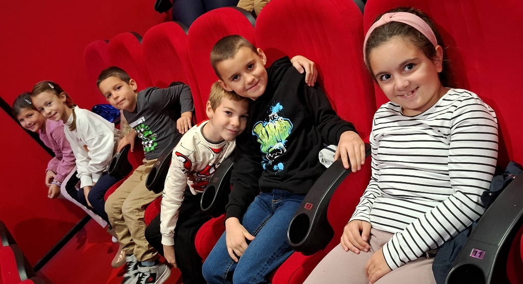 У понедјељак, 27.10.2025. године, ученици 1-1 и 1-2, у пратњи својих учитељица, посјетили су Фестивал анимираног филма у биоскопу „Палас“. „СЛОВО, НА СЛОВО“ био је назив серијала који су гледали, а намијењен је дјеци узраста 5-8 година за учење азбуке. Настао је по мотивима истоименог серијала, уз којег су одрасле многе генерације, а чији је аутор Душан Радовић. Уз сталне ликове меде, јежа, зеке, Азбуке и слова које се обрађује, дјеца се упознају са дјелима наших најпознатијих српских пјесника за дјецу. Кроз партнерску сарадњу са Библиотеком Срба у Хрватској која организује фестивал дјечије илустрације, радови прикупљени на фестивалима кориштени су у креирању епизода у дијелу са анимацијама.
